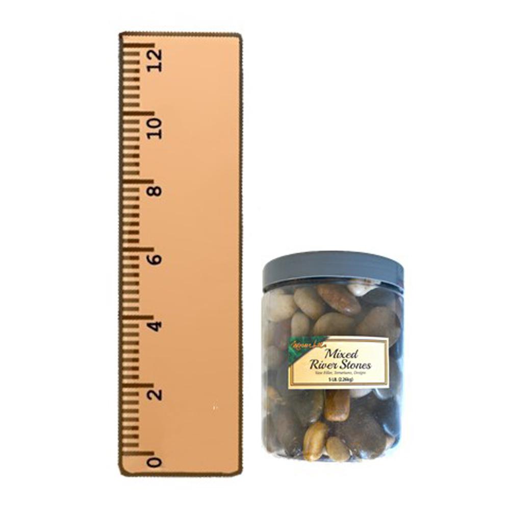 Mixed River Stones are polished to bring out the varying colors of a rushing river bed. Black, grey brown and reddish colors are mixed. Stone sizes vary by stone color. Polished to a fine shine.