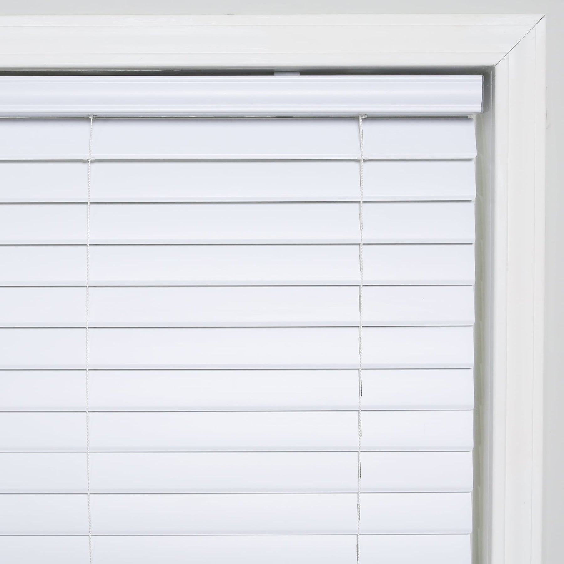 These sleek white blinds bring a tailored serenity to any room, diffusing light with a refined, room-darkening effect. The integrated headrail and smooth 2-inch slats create a continuous, architectural line that feels polished and contemporary. Style them within a layered window treatment—pair with textured drapery for depth and warmth. A chic essential for everyday luxury and practical comfort.