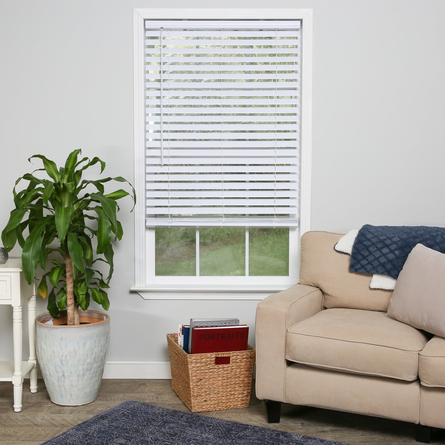 • Durable PVC Slats: Rigid micro-edge 2-in slats resist warping while staying lightweight
