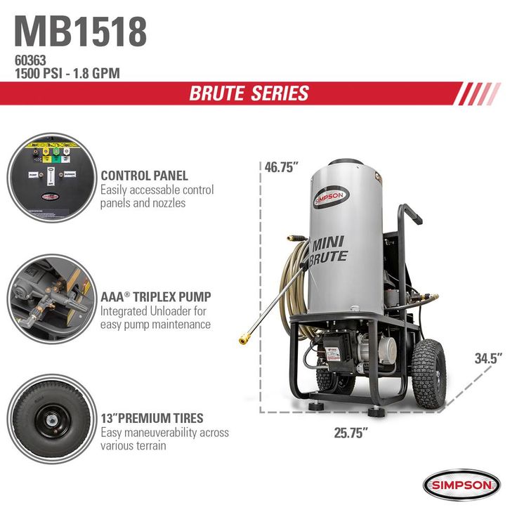 Simpson Mini Brute 1500 PSI at 1.8 GPM with Triplex Plunger Pump Hot Water Professional Electric Pressure Washer