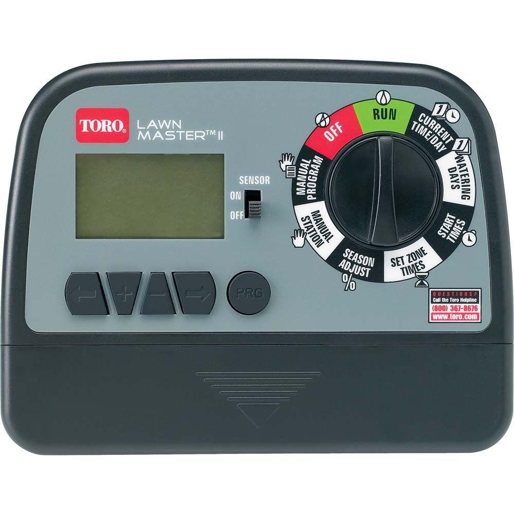 Toro LawnMaster II 4-Zone Sprinkler Timer includes 3 independent watering programs and 3 start times for customized watering schedules according to plant or zone type, municipal guidelines and seasonal changes. This timer features a rain-sensor port to accommodate a remote sensor to suspend watering when it rains to help prevent water waste (remote sensor not included).