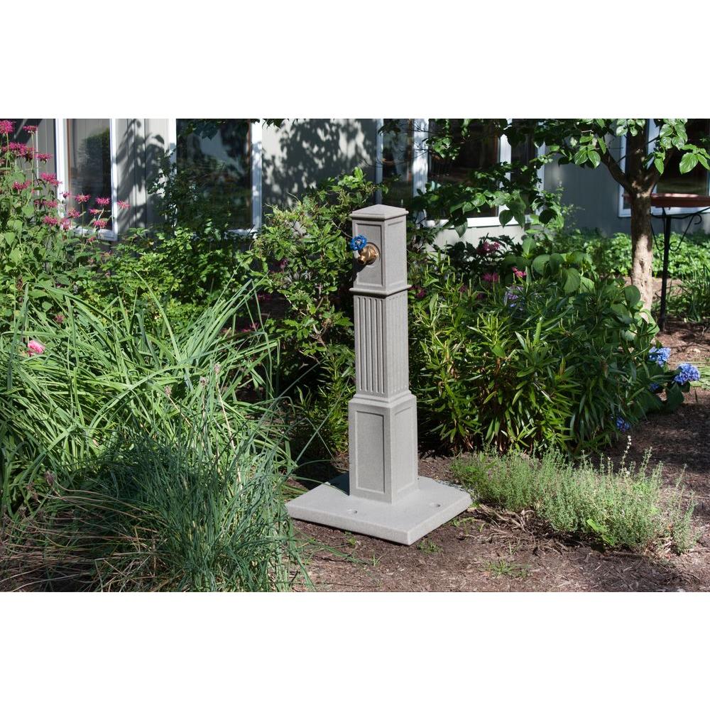 The Oasis Garden Hose Tap is the perfect product to give you maximum flexibility with your garden hose. It's designed to sit out away from the home and provide easy access to otherwise obscured and hard to reach spigots on the side of the house. With the Oasis, you simply attach one end of a regular garden hose to the hose assembly at the base and the other end to your house spigot. Turn the house spigot on and the Oasis is ready to provide full pressure water wherever it's located. This setup is great when bushes, trees, air conditioning units or other landscaping makes reaching your tap a pain. Attach an extra long hose to the Oasis and it can be placed at remote locations around the yard where far away gardens or plants can be watered. The attached hose can even be buried below the frost line, keeping the line free from freezing and bursting in cold weather. The entire unit stands at 36 in. tall, making it very easy to reach and use unlike low-to-the-ground house spigots. 4 impact stakes are included and help anchor the Oasis deep into the soil. The flared base also keeps the entire unit stable, especially when covered with layers of top soil or mulch. The entire unit is molded from BPA-free Polyethylene which is impervious to weather and heavy impacts. The Oasis Garden Hose Tap is an inexpensive and elegantly styled solution for your garden hose needs.