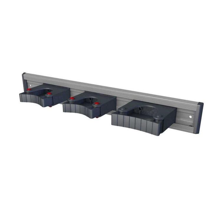 - Adjustable, repositionable holders slide along rail, includes 2-medium holders (fit handle diameters 0.75 to 1.125 in.) and 1-extra-large holder (fit diameters 1.125 to 1.5 in.), holders can also screw directly into wall