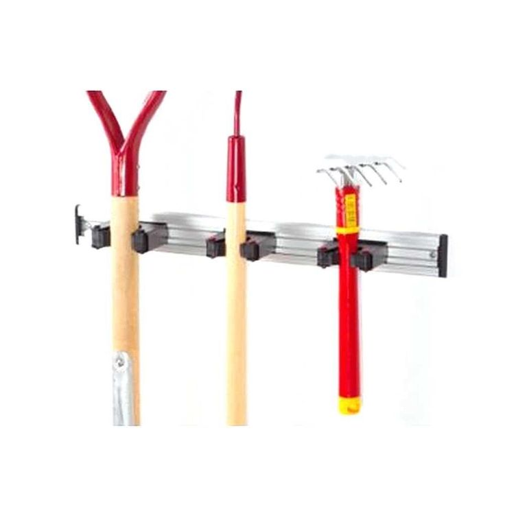 - Wall mounted tool holder to store and organize mops and brooms, rakes and shovels, hardware, sports gear and other unique items, quickly access, replace tools using 1-hand