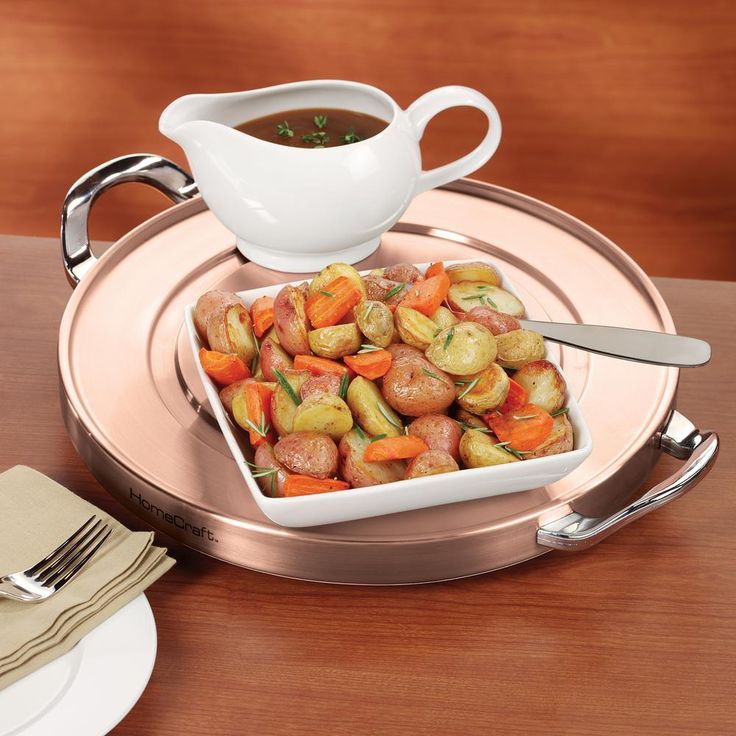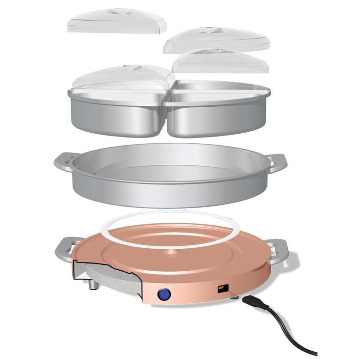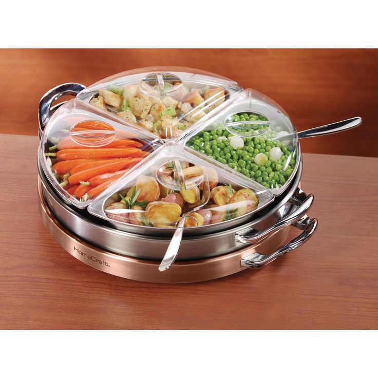 3.75 L Stainless Steel Lazy Susan Warming Tray with 4 Crocks