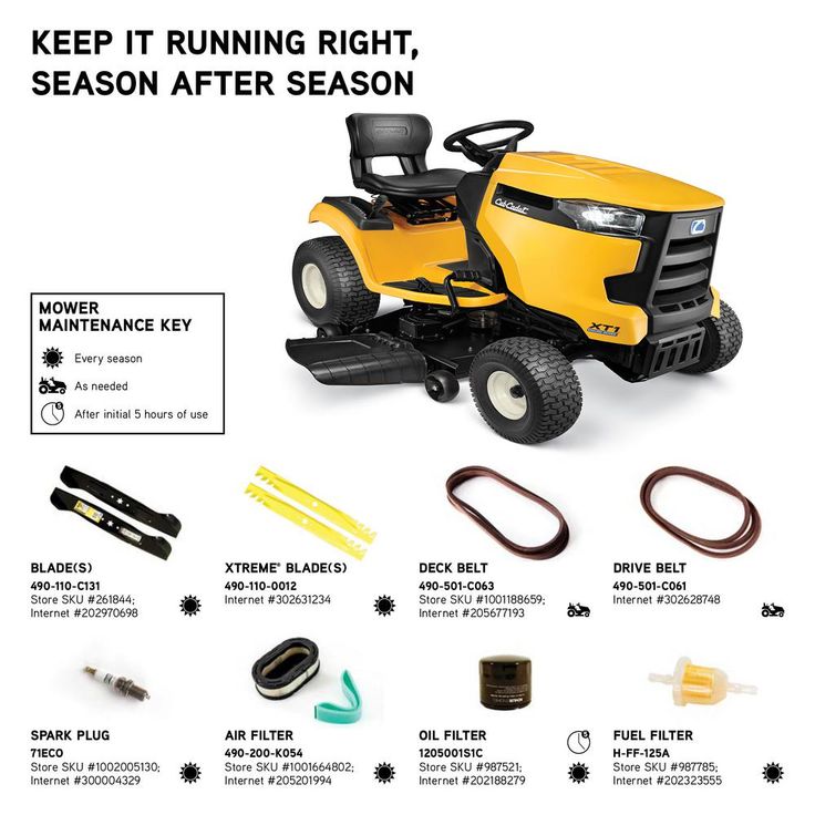 • Optional multi-seasonal attachments provide year-round versatility, including a twin bagger, snow thrower, sun shade/snow cab, snow blade, mulch kit, steel and poly carts and a rear spreader sold separately