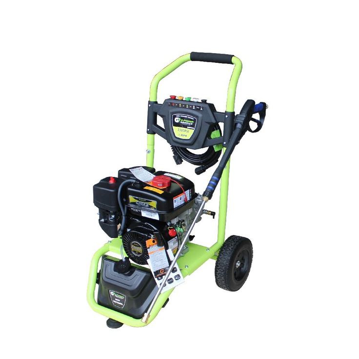 Regular price $284.39Green-Power GNW3324A pressure washer is created specifically with homeowners in mind, offering the convenience of total control of the pressure washer at the spray wand. It is simple to use and perfect for cleaning RVs, motorcycles, ATVs, boats, trailers, cars, patios, roofing, walls, stucco, driveways, sidewalks, and other area around your house. Powered by LCT professional brand gasoline engine that feeds into an aluminum Axial Pump, it delivers 3300 psi of high flow cleaning power at 2.4 Gal. per minute, which is more than enough to tackle any job you throw at it. The quick detachable spray wand allows for quick adjustment between low and high pressure without the need to switch nozzles. Built-in 3 liter detergent tank.