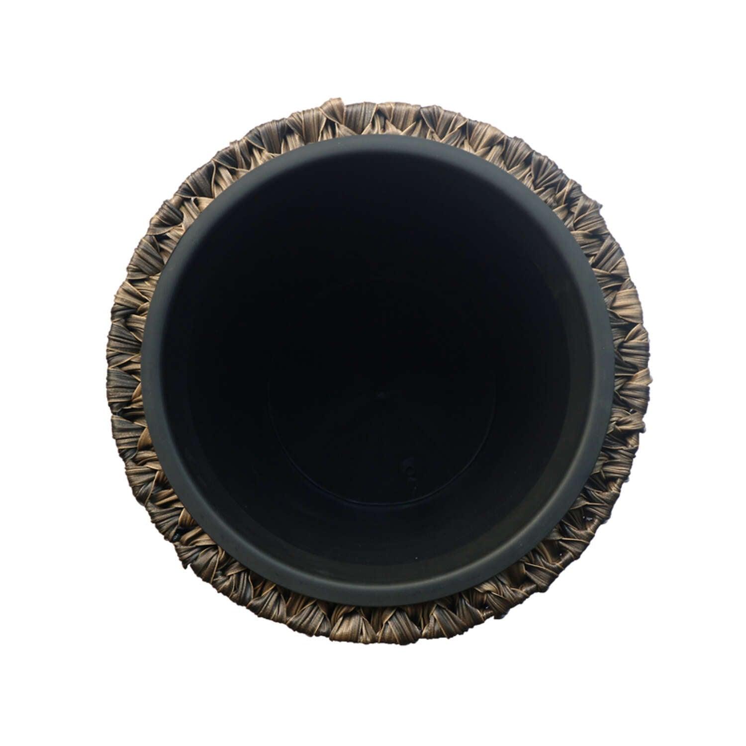 Unique "woven twisted banana leaf" planter. Durable materials allow this planter to look fresh and new for years.