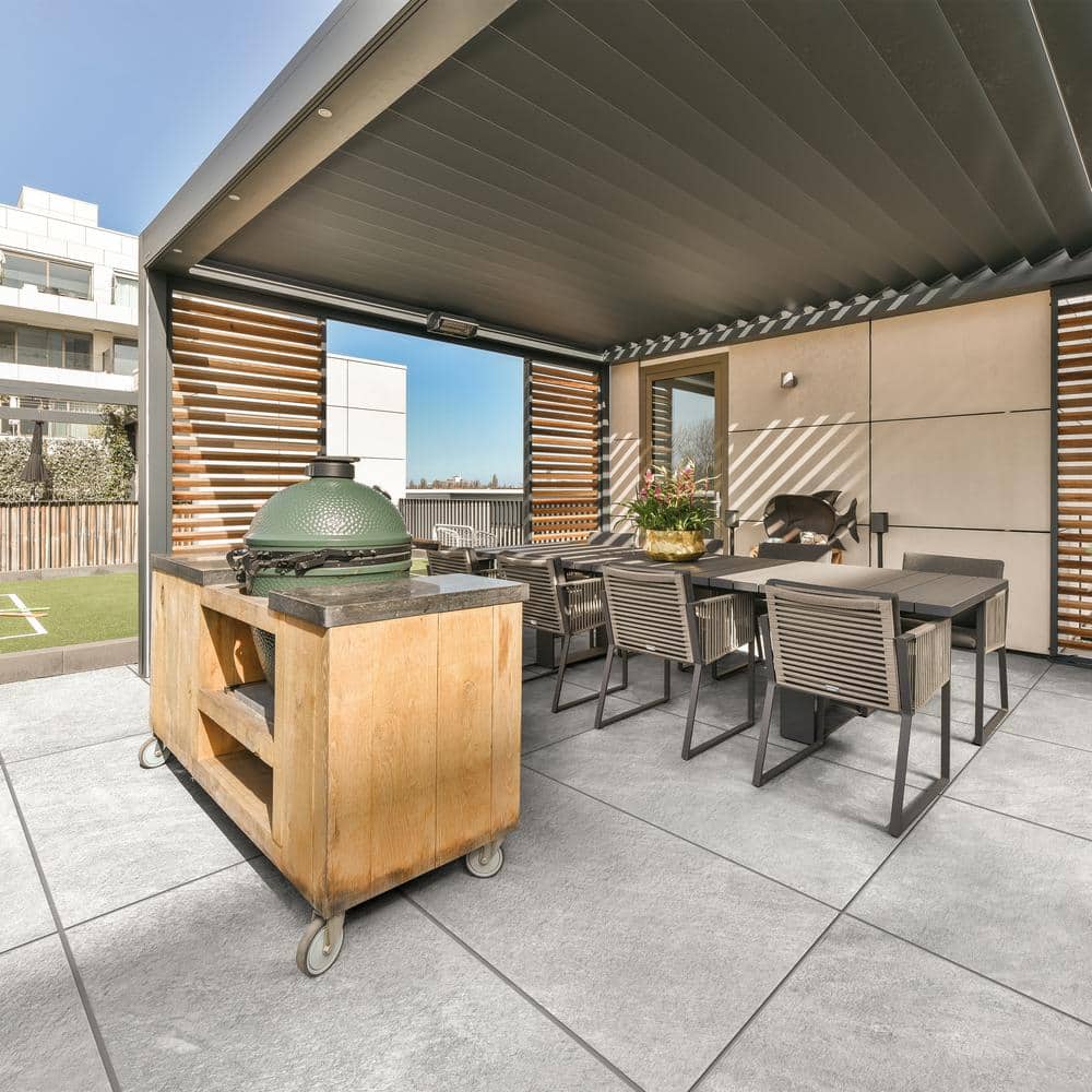 The Alpe Silver paver brings a cool, quartzite-inspired texture that instantly refines outdoor rooms. Its generous 24 x 48 format elongates sightlines and creates a gallery-like calm underfoot. Pair it with warm wood furnishings and charcoal accents to balance tone and texture. A modern essential, it turns patios into polished, livable retreats.