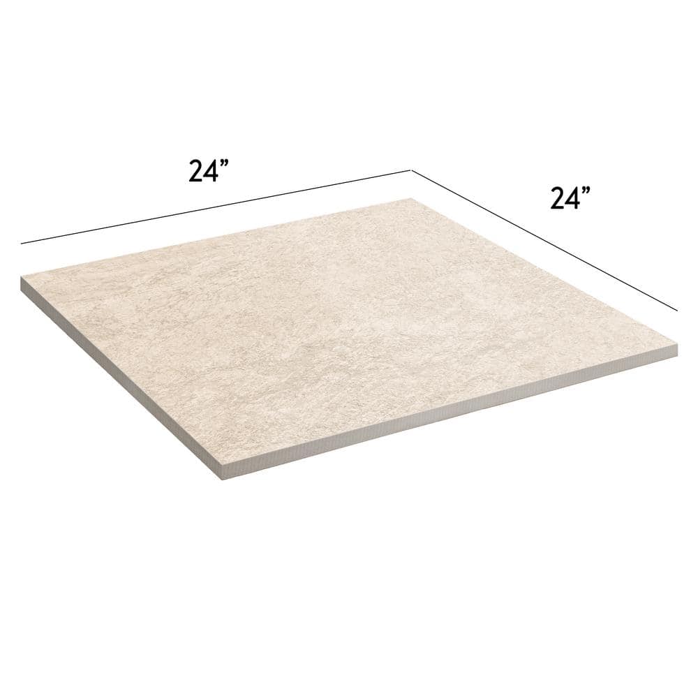 Durable 24-in square porcelain paver with a refined stone-look finish in Alpe White. Its 20mm (3/4 in.) thickness is ideal for outdoor patios, walkways, and landscaped spaces, offering lifeproof performance and HD graphic detail.