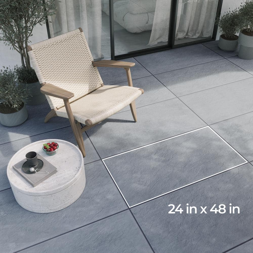 This large-format porcelain paver recreates the look of natural bluestone with a rugged cleft texture for outdoor spaces. The 24x48-inch, 3/4-inch-thick tile delivers superior durability over concrete, is weatherproof and fade-resistant, and requires minimal maintenance—ideal for patios, pool decks, and walkways.