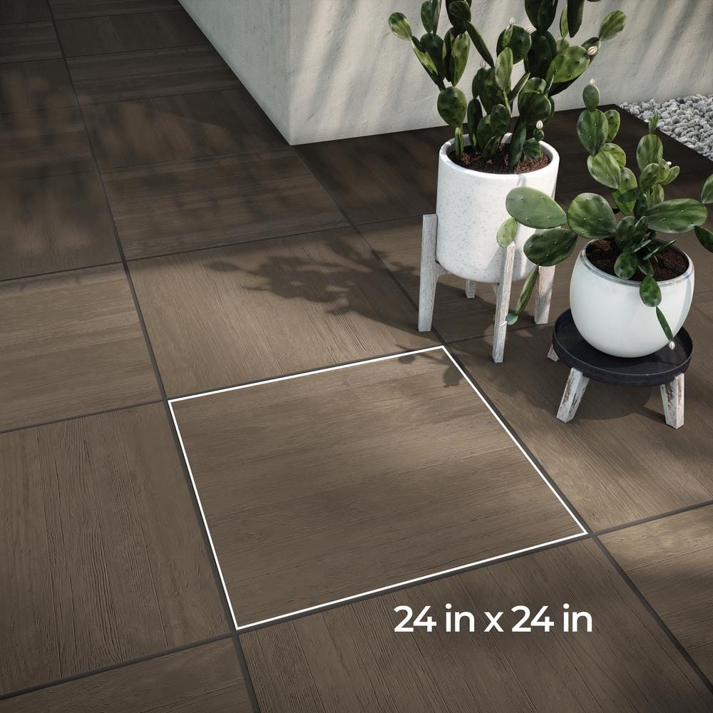 Transform your outdoor spaces with the Corso Italia Foresta Brown Wood Look Porcelain Paver. This durable 24 x 24-inch tile captures the rich texture of aged wood while offering the superior performance of porcelain. Ideal for patios, pool decks, and high-traffic areas, it combines style with exceptional slip resistance and weather durability.