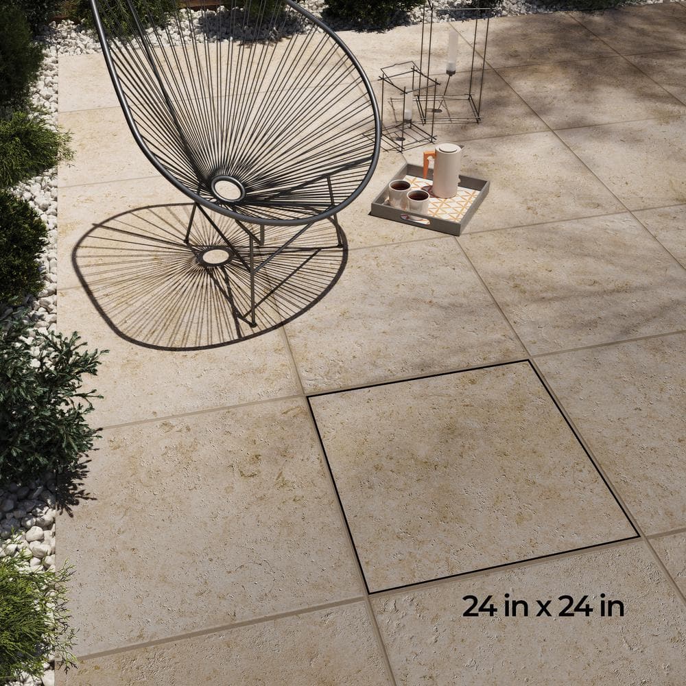 This 24 in. x 24 in. porcelain paver delivers a warm Jerusalem Beige stone look with the durability of porcelain. At 0.75 in. thick, it’s built for outdoor patios and walkways, offering lifeproof performance and HD graphics for a natural appearance.