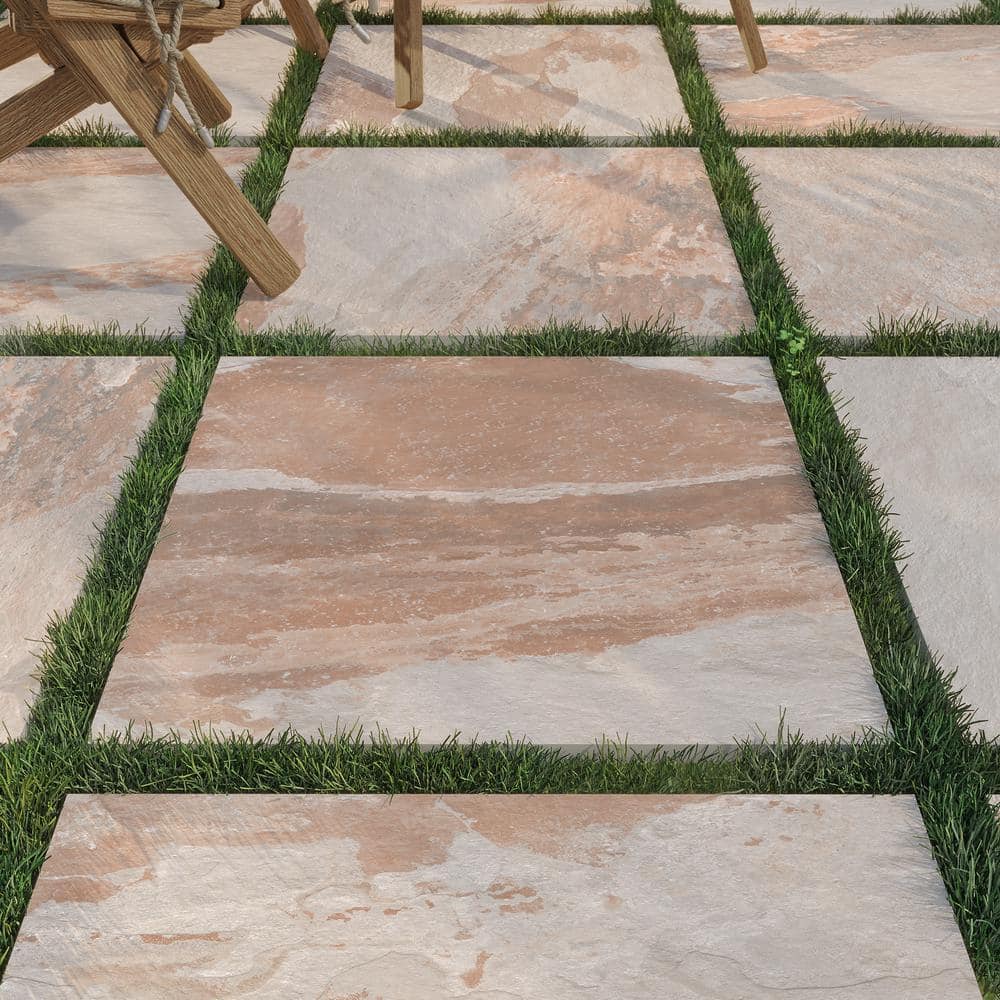 This porcelain paver channels the organic poetry of hand-cut flagstone, with soft taupes and blush undertones that bring a sun-kissed elegance outdoors. The natural cleft texture is the star—tactile, nuanced, and beautifully layered. Style it as generous stepping pads through greenery or compose a serene patio with gravel joints for a refined, resort feel. It’s a chic essential for crafting luxurious, low‑maintenance exterior rooms.