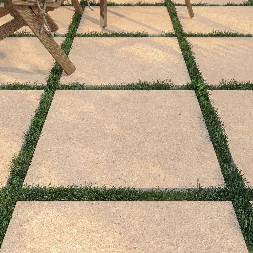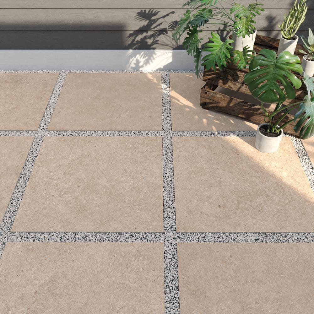 This paver channels the quiet sophistication of natural limestone, rendered in a serene sand tone that softens any outdoor space. The matte finish and rectified profile deliver a tailored, modern foundation that pairs beautifully with wood, greenery, and sculptural planters. Try alternating squares with gravel or grass joints for a graphic, garden-chic grid. It’s a refined essential for elevating terraces and pathways with effortless luxury.