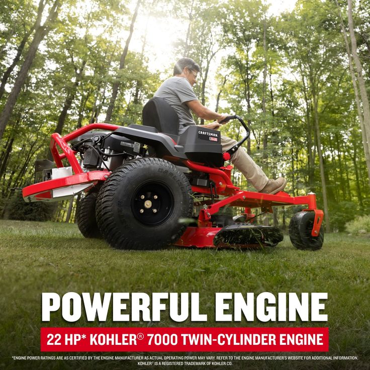 This Zero-Turn Riding Mower provides the ultimate mowing experience. Its strong 23 HP twin-cylinder engine has an easy and reliable starting system with no prime, no choke and it features a 46 in. steel deck. Equipped with sleek new frame design, a dual-range hydrostatic transmission and high-back seating for optimum support and comfort, it will provide an exceptional ride as you power through the lawn with its zero-turn radius. You can add an optional mulching kit to create the perfect finishing touches.