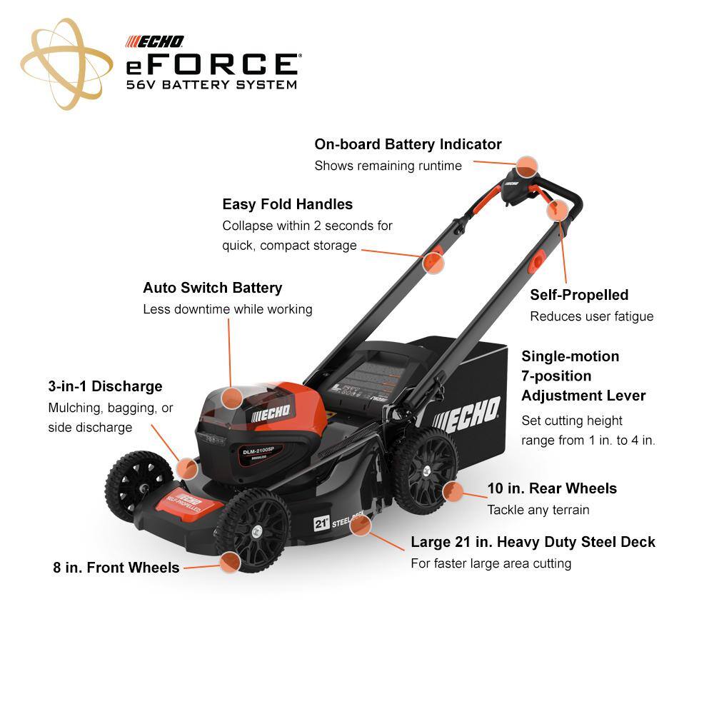 ECHO eFORCE 56V 21 in. Cordless Battery Walk Behind Self-Propelled Lawn Mower with 5.0Ah Battery and Charger