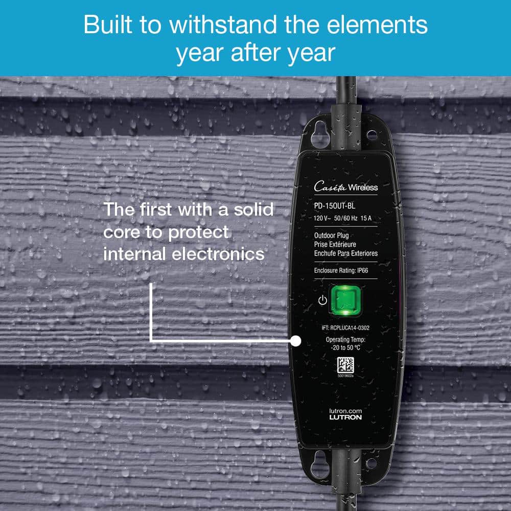 Lutron Caseta Weatherproof Outdoor Smart Plug for Landscape and String Lighting, 15-Amp On/Off Switch, Black (PD-15OUT-BL)