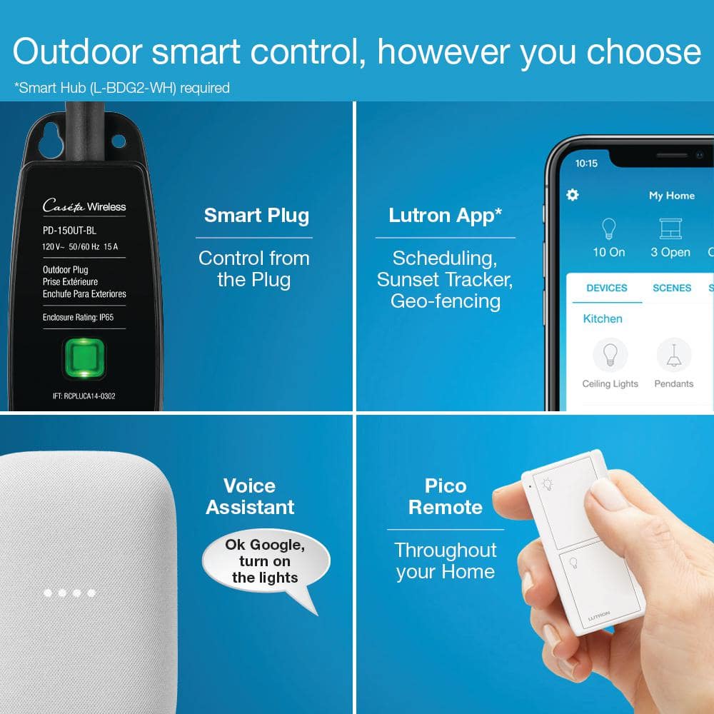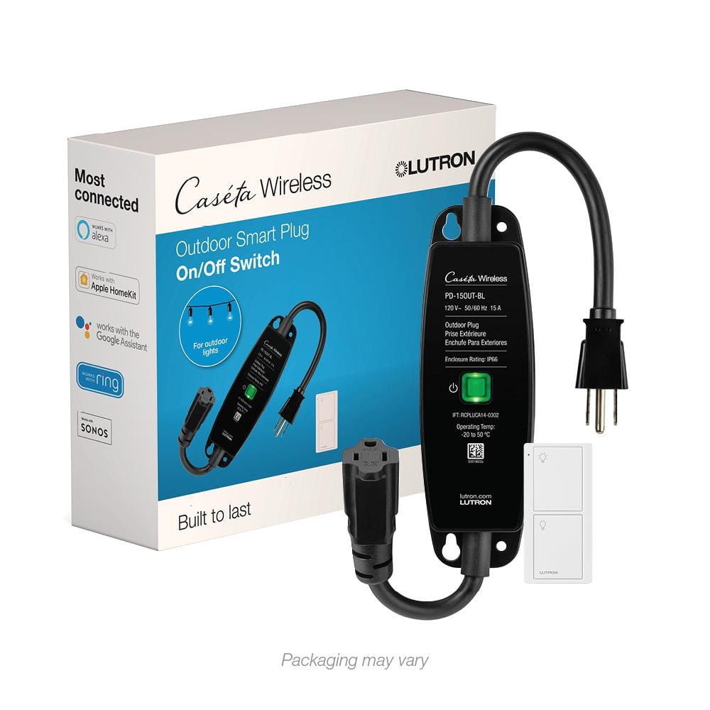 Lutron Caseta Weatherproof+ Outdoor Smart Plug with Pico Remote for Landscape/String Lights, 15A On/Off, Black (P-PKG1OUT-BL)