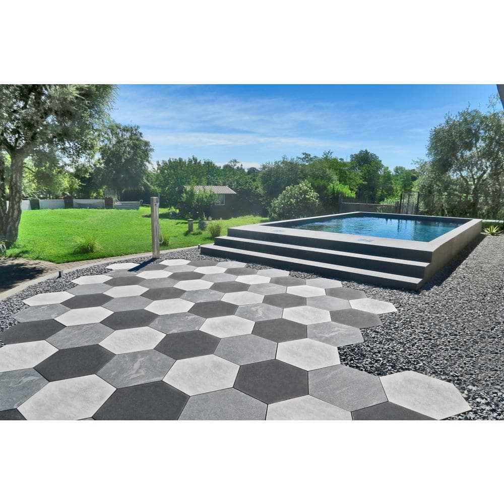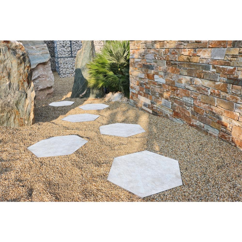 Enhance your garden's aesthetic and functionality—order the MJSI Quartzite White Hexagon Porcelain Paver today and craft a stunning, durable path.