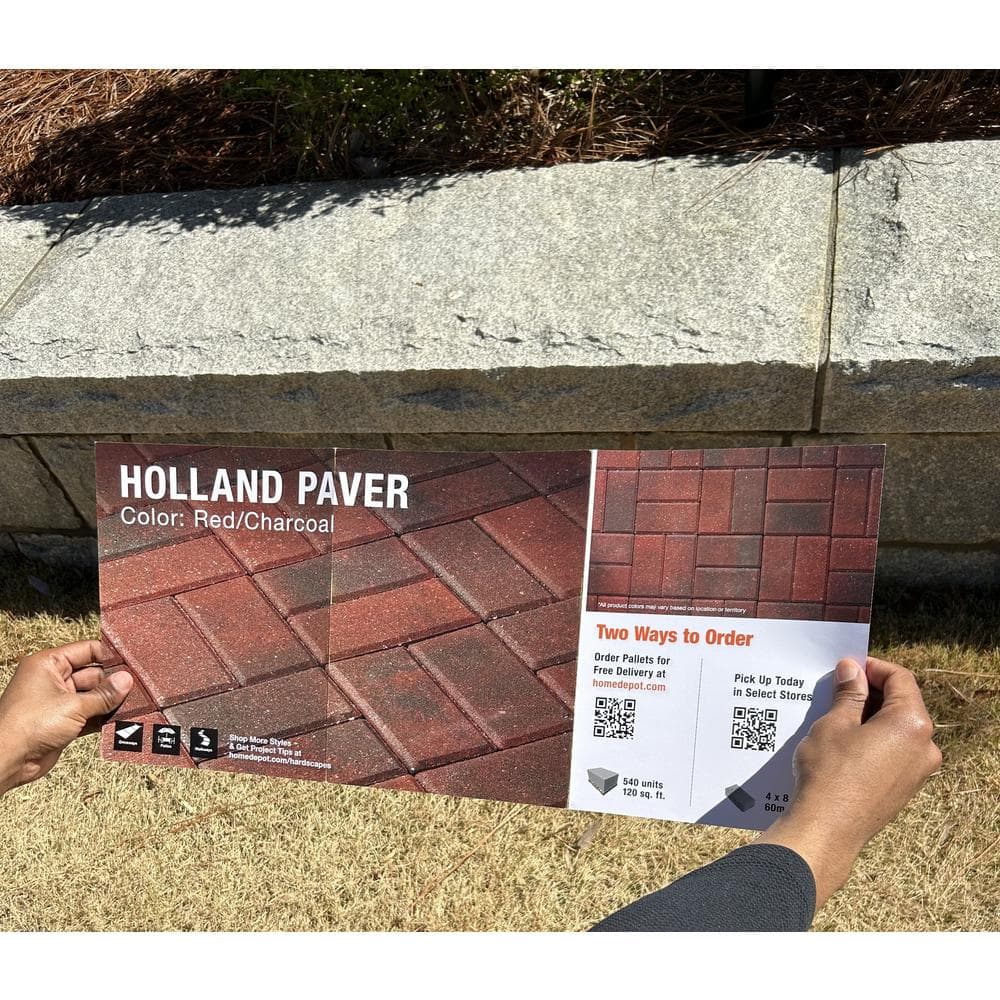 Oldcastle Paper Sample Only: 8 in. L x 4 in. W x 2.25 in. H 60 mm Red/Charcoal Holland Pavers Sample Board (1-Piece)