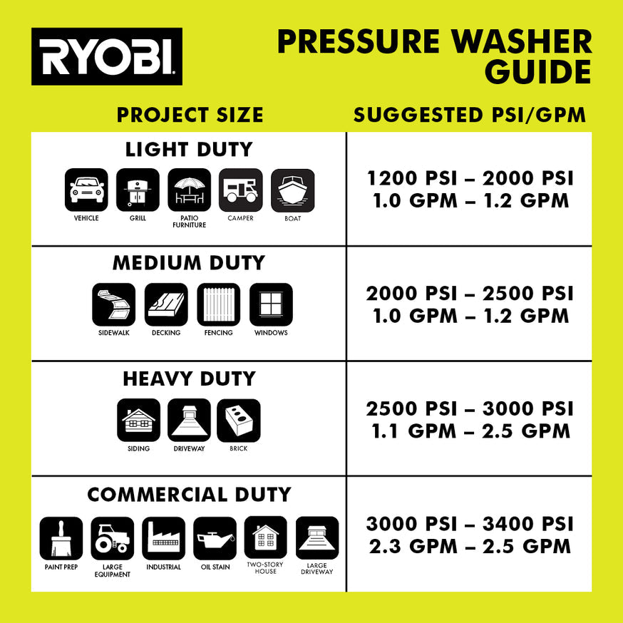 • Light-Duty Performance: 1,800 PSI and 1.2 GPM tackle grills, cars, windows, patio furniture, and sidewalks