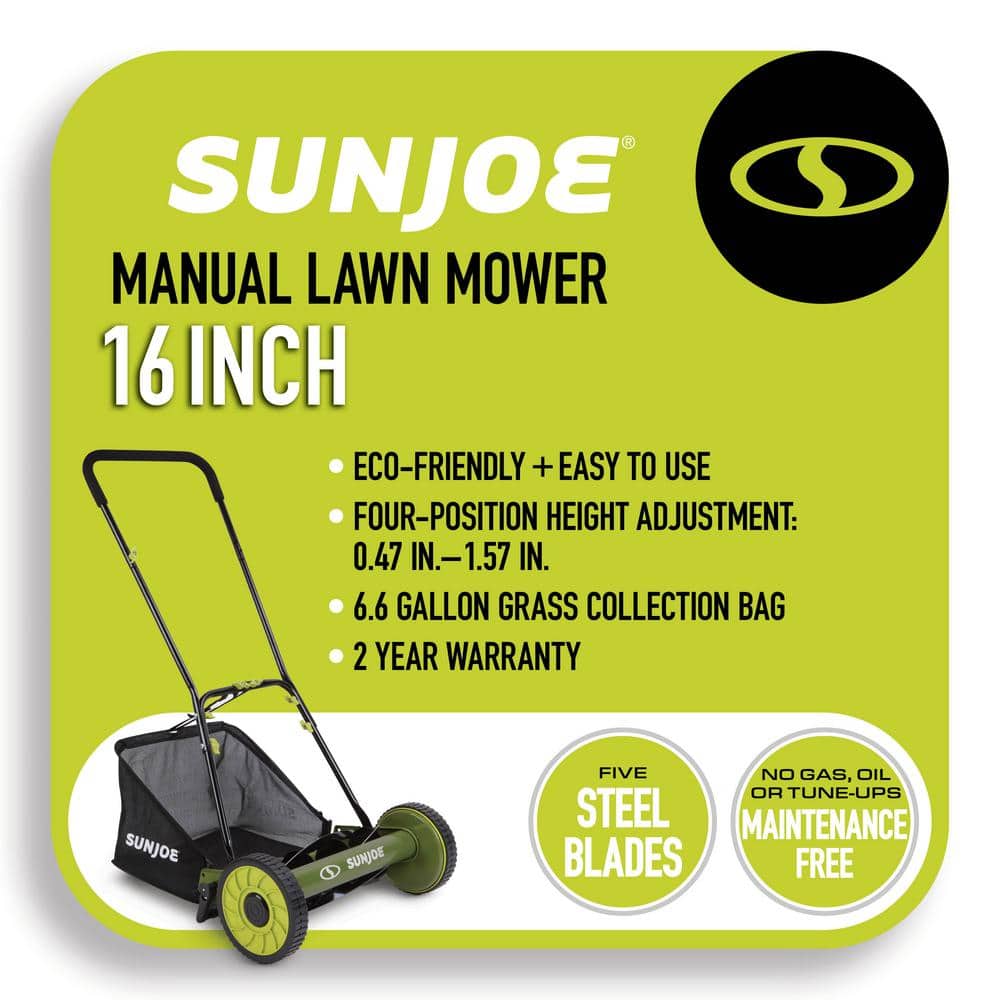 Sun Joe Mow Joe 16 in. Manual Push Walk Behind Reel Mower with Catcher