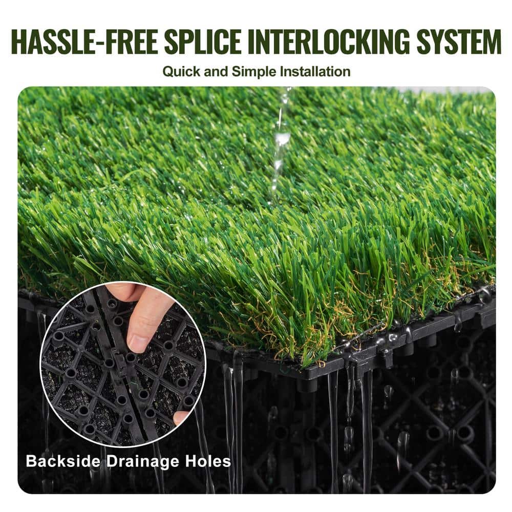 VEVOR Artificial Grass Tiles Turf Deck Set 12 x 12 in. Synthetic Fake Grass Artificial Grass Interlocking Tiles (9 Pack) Green