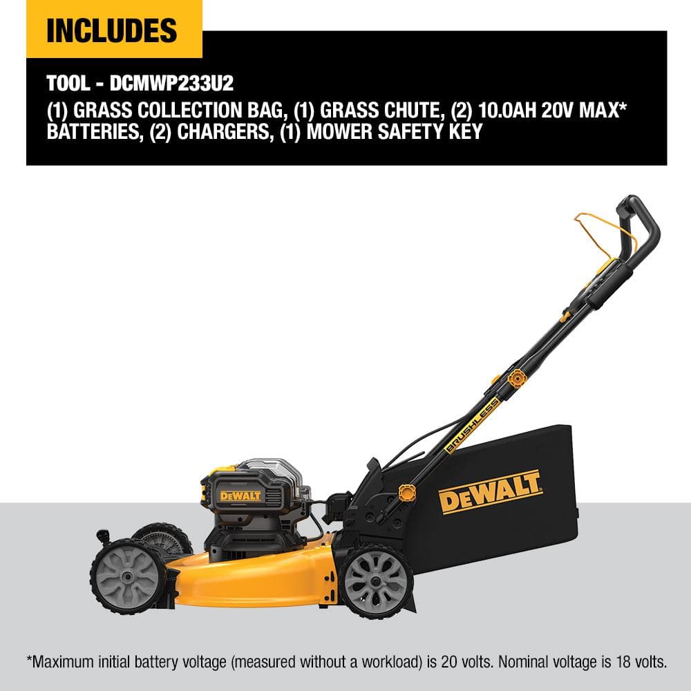 DEWALT 20V MAX DCMWP233U2 21.5 in. Cordless Lawn Mower Kit with (2) 10Ah Batteries & Charger