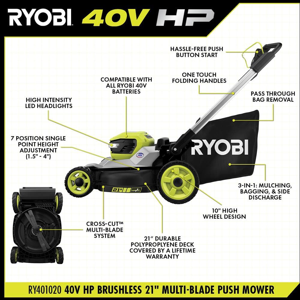 RYOBI 40V HP Brushless 21" Multi-Blade Lawn Mower