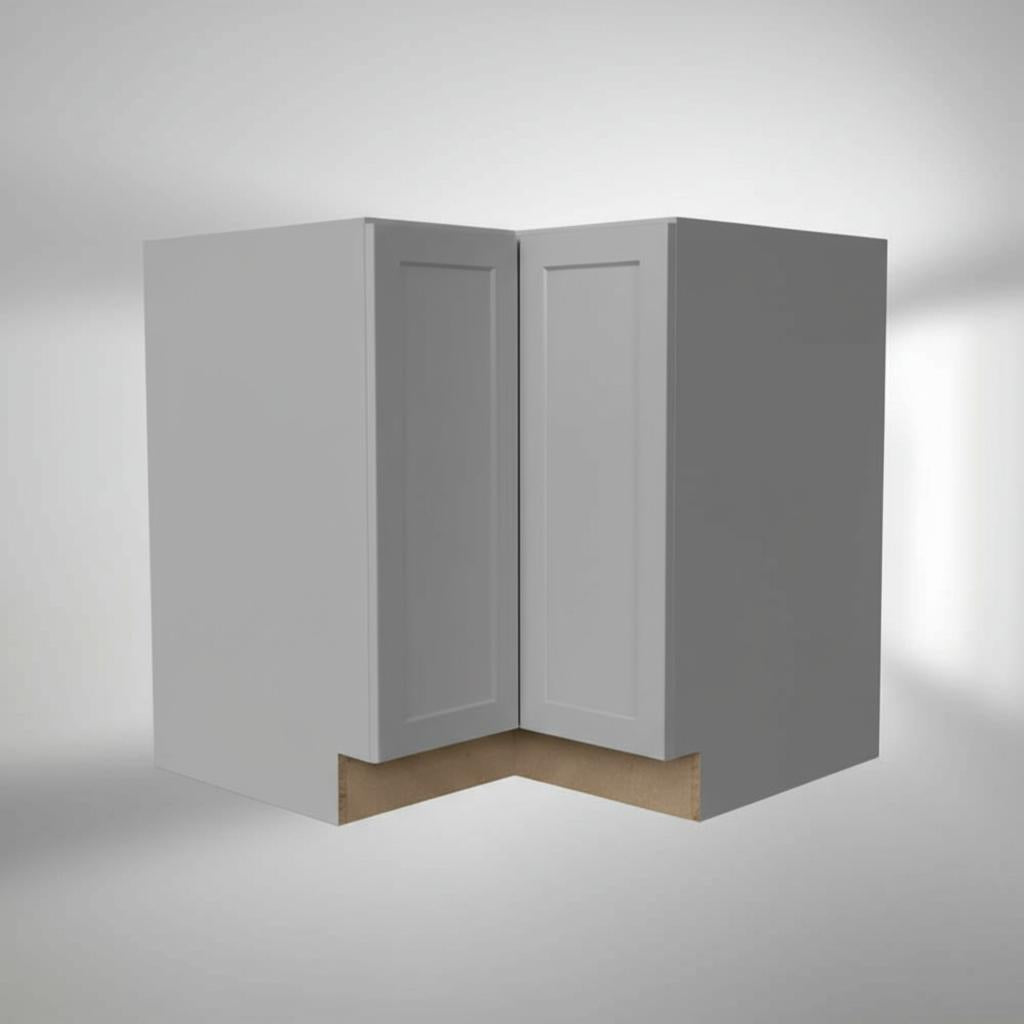 The Hampton Bay Designer Series Lazy Susan Corner Base Cabinet in Heron Gray offers a stylish and functional solution for maximizing corner space in your kitchen. Featuring durable composite construction and a sleek thermofoil finish, this cabinet is preassembled for easy installation.