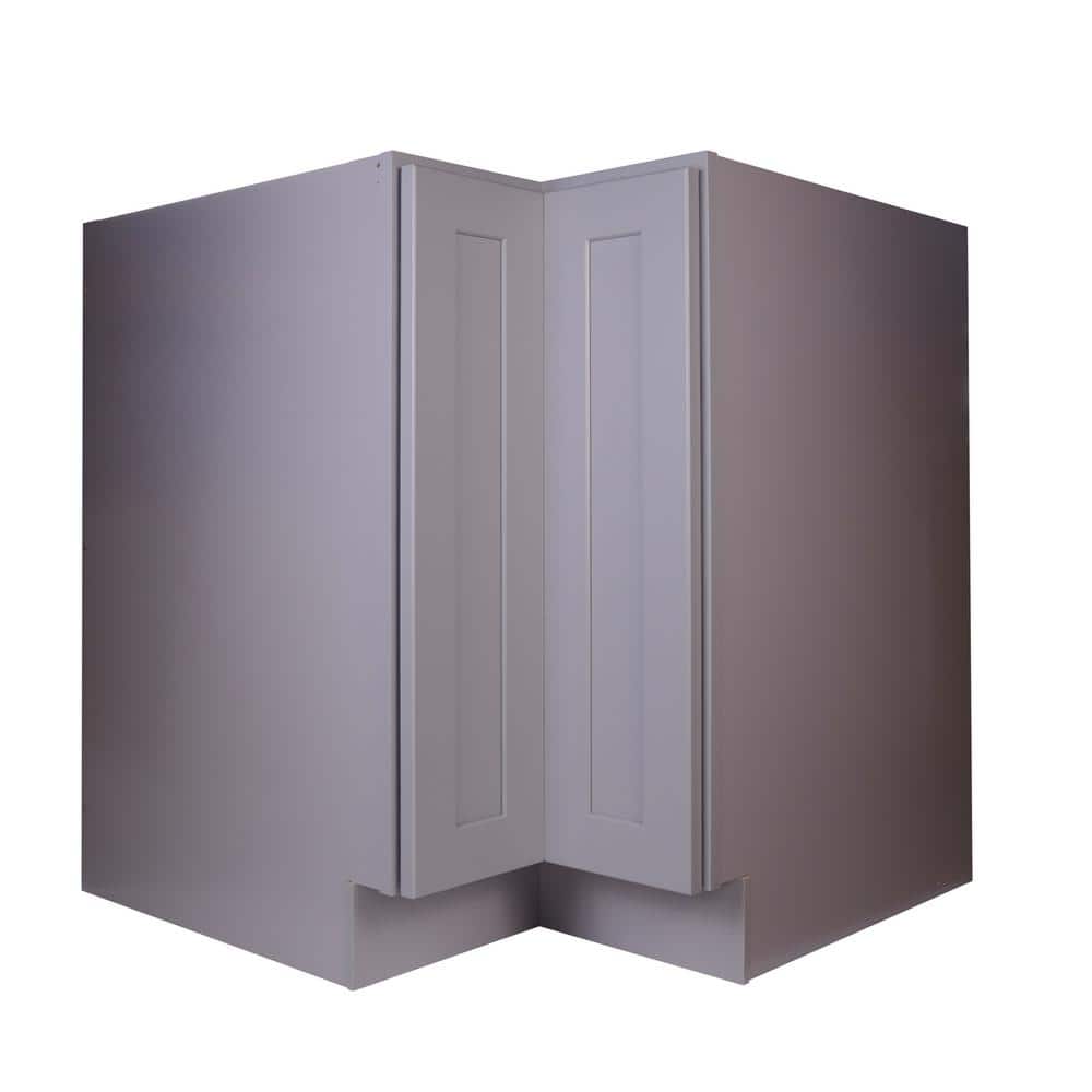Elevate your kitchen's functionality and aesthetic with the Bremen Gray Lazy Susan Base Kitchen Cabinet. Crafted from durable birch plywood, it offers smooth, soft-close access to your kitchen essentials with its rotating shelves, providing both practicality and elegance.