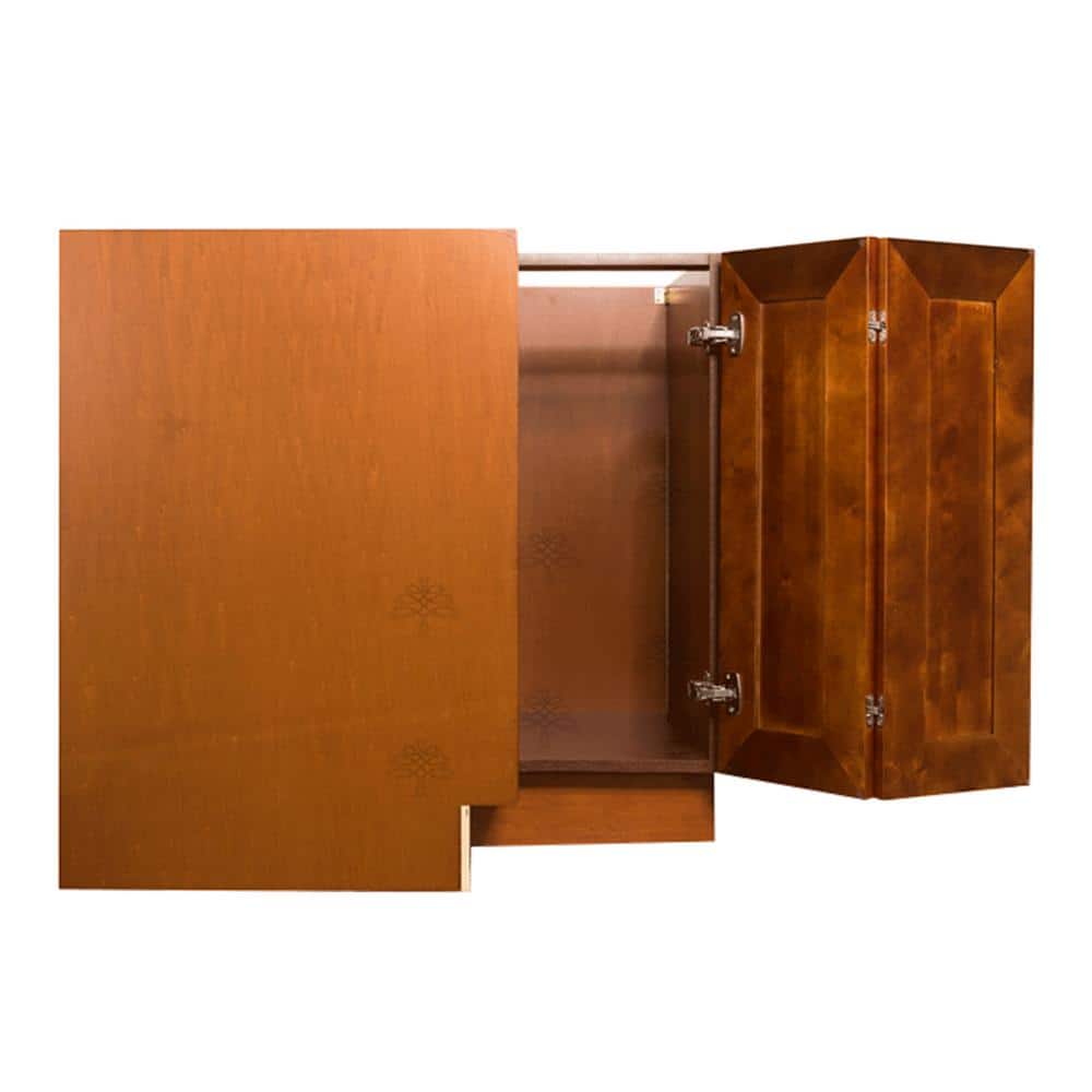 The LIFEART CABINETRY Cambridge Lazy Susan Cabinet offers a refined blend of functionality and elegance, enhancing any kitchen with its sophisticated chestnut finish. Crafted from high-quality plywood and solid hardwoods, this eco-friendly, KCMA-certified cabinet exhibits outstanding durability and style. Designed for seamless corner integration, it comes with soft-close doors to enhance the modern culinary experience.