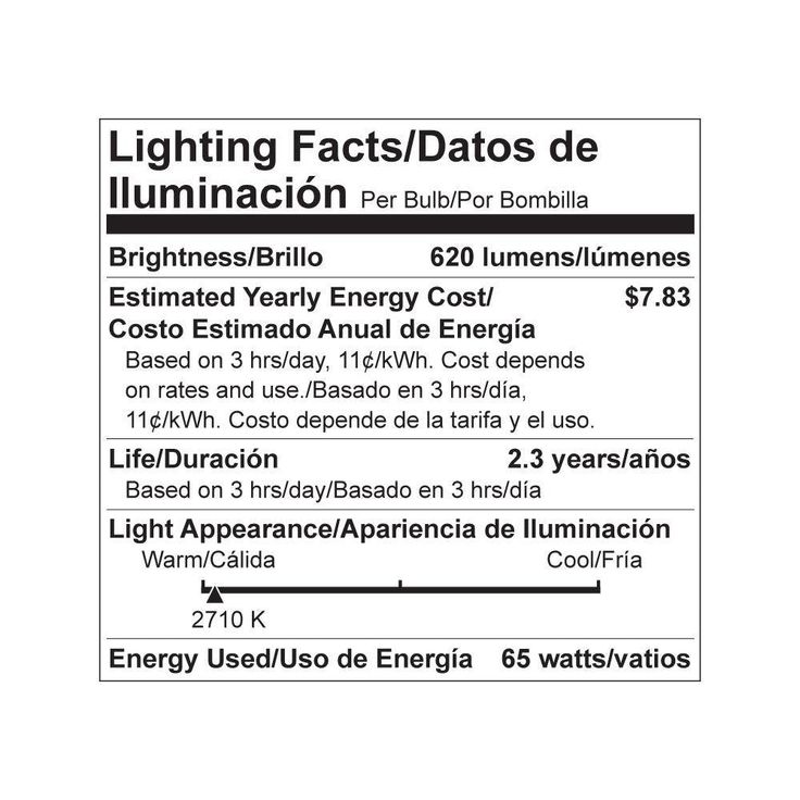 • Estimated yearly energy cost: $7.83 (based on three hours/day, 11¢/kWh; costs depend on rates and use)