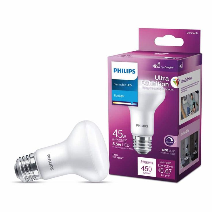 Philips Energy Saving LED 6-Watt R20 indoor flood light is ideal for residential use in kitchens, living rooms and dining rooms and for commercial use as general lighting in retail and hospitality spaces. It provides a soft, white light and is perfect for general room lighting. Featuring a sleek, white design, this fully dimmable, medium base flood light replaces your current 45-Watt halogen R20. Philips Energy Saving LED R20 flood light can be used in recessed cans and track light fixtures.