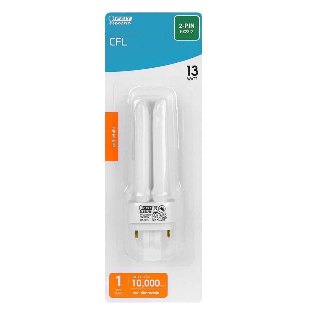 Feit Electric 13-Watt Equivalent PL CFLNI Quad Tube CFL Light Bulb, 2-Pin GX23-2 Base, Soft White 2700K (1-Pack)