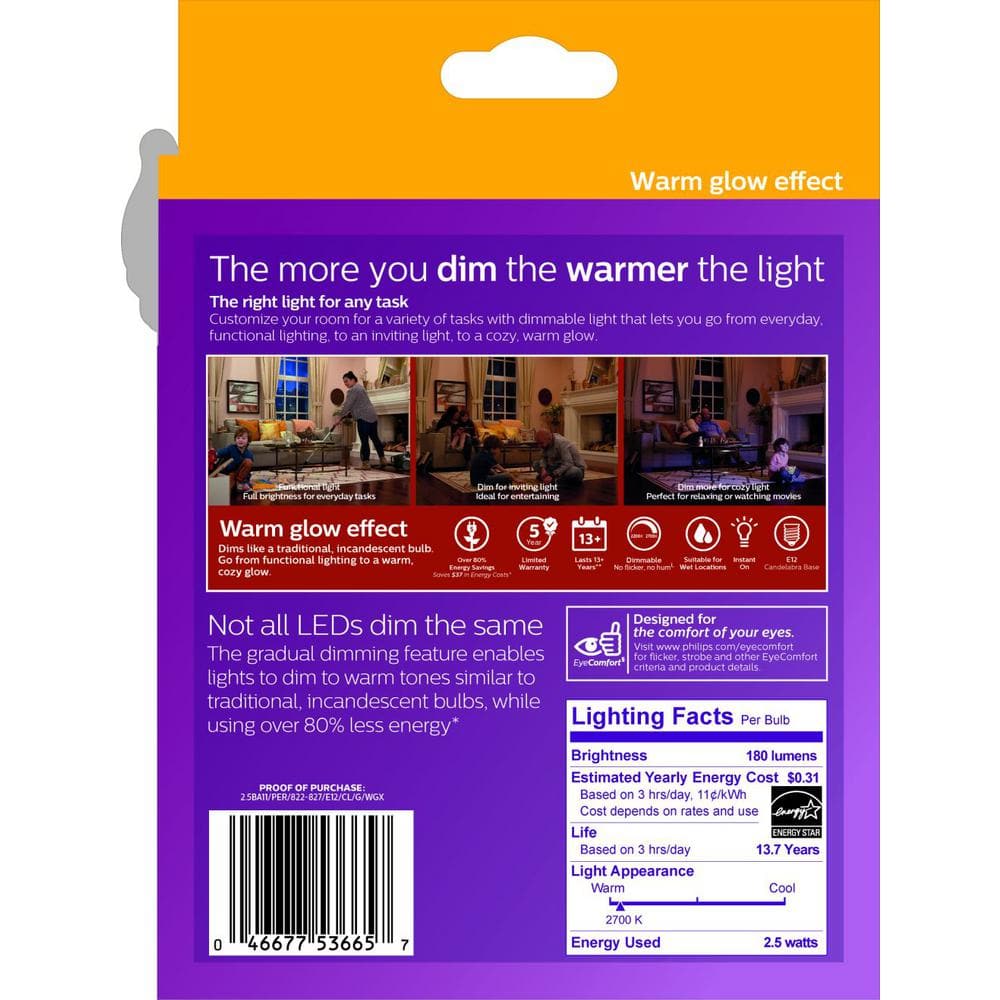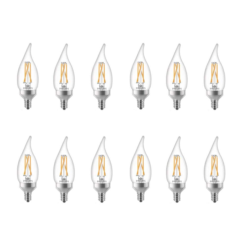 Philips Warm Glow B11 E12 Dimmable LED Candle Bulbs (12-Pack)