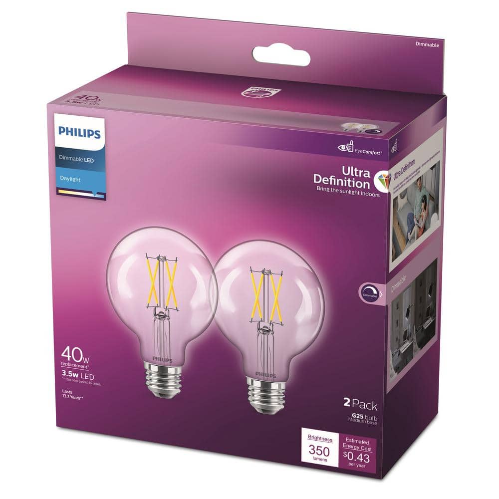 Bring vibrant, true-to-life daylight to your home—add this Philips G25 LED 2-pack to your cart now.