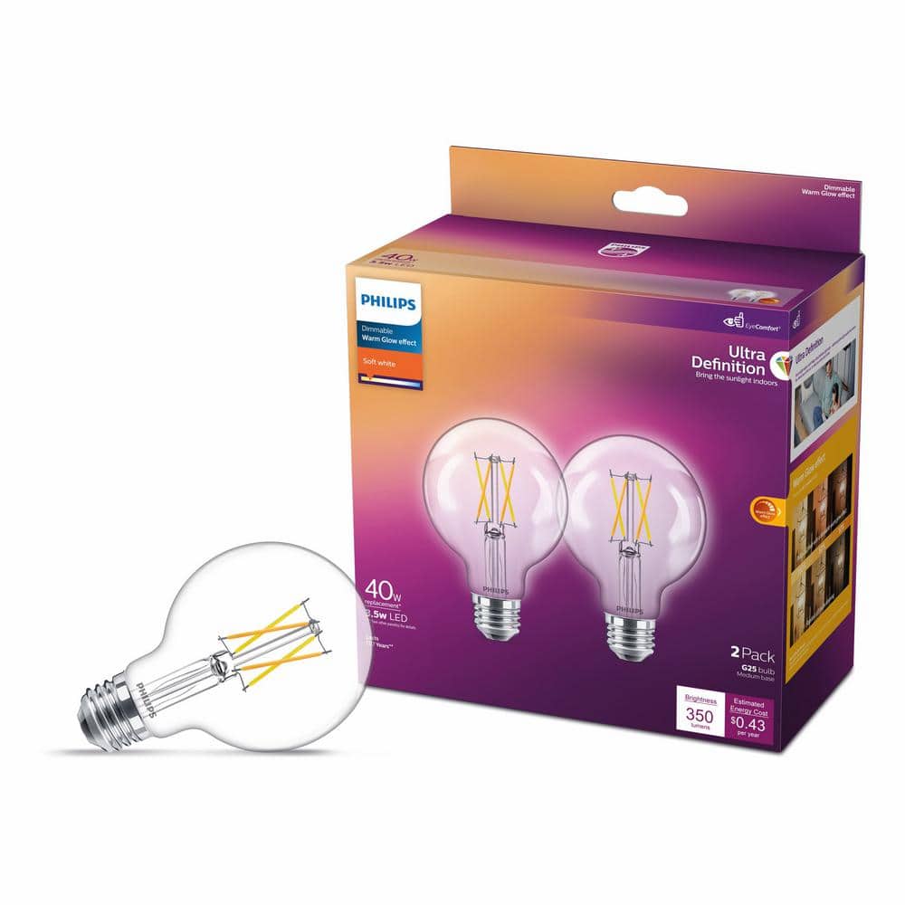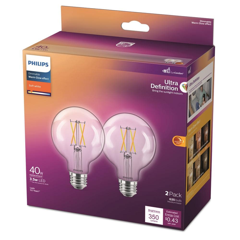 Philips 40-Watt Equivalent G25 Dimmable LED Light Bulb, Clear Glass, Warm Glow Effect, 2700K (2-Pack)