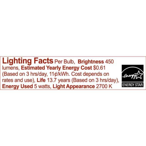 • Energy Efficient: 45W replacement uses roughly 5–6W to deliver 450 lumens