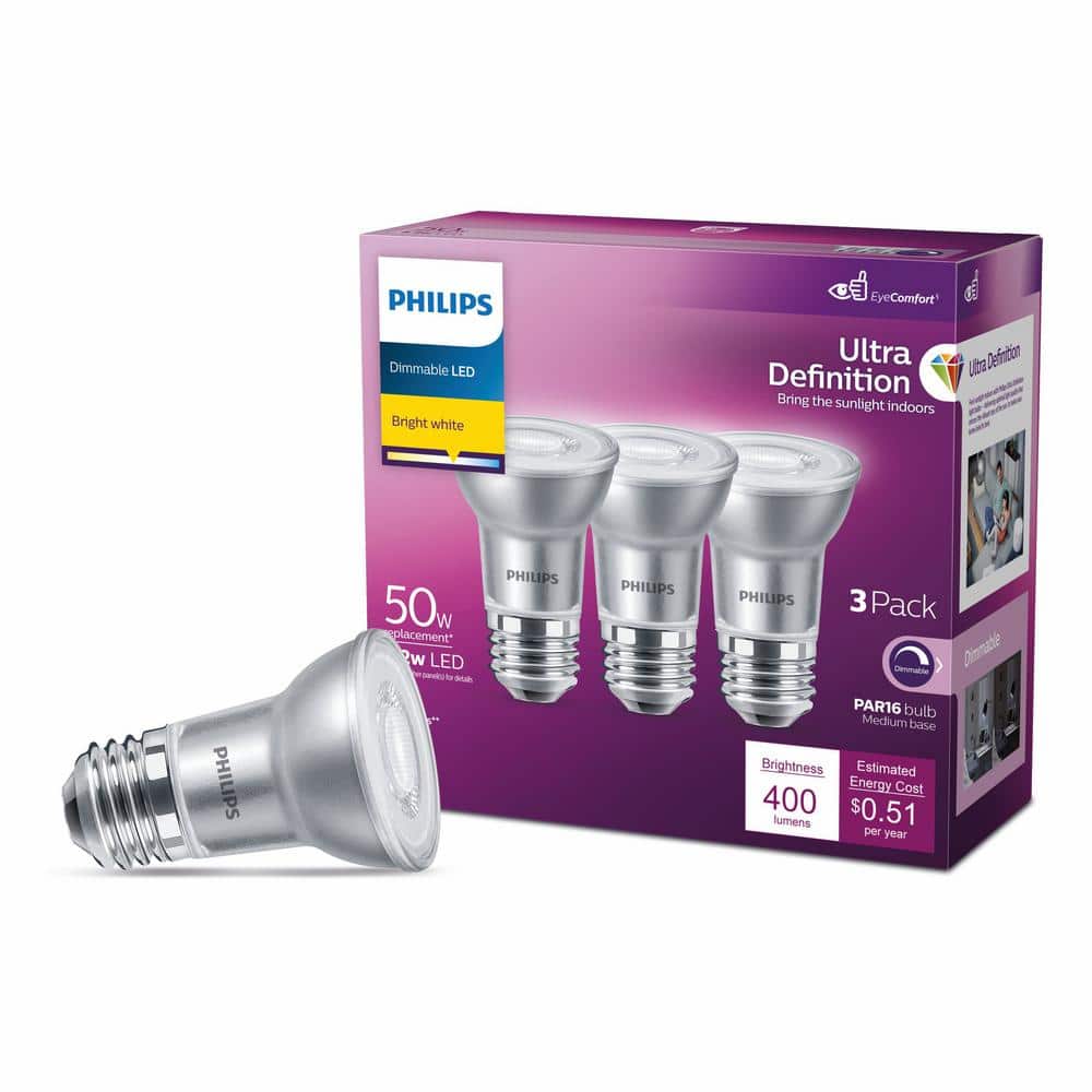 Philips 50-Watt Equivalent PAR16 Dimmable LED Light Bulb, Glass, Bright White (6-Pack)