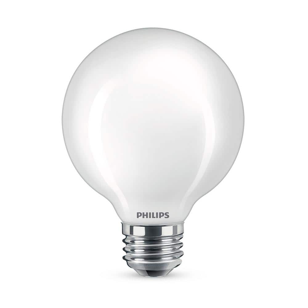 These Philips G25 LED globe bulbs deliver crisp 5000K daylight with frosted glass for glare-free, comfortable illumination. Using only 5.5 watts while replacing 60W incandescents, they provide up to 11,000 hours of long-lasting, energy-saving light for bathrooms, vanities, and decorative fixtures.
