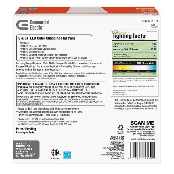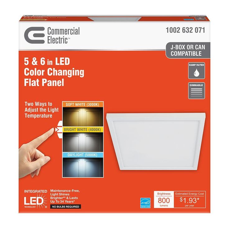 Enhance your lighting options with the Commercial Electric 74208/HD/4 4-Pack 7.5 in. Square Round LED Energy Star Flat Panel Ceiling Fixture. With a low profile design of less than 1 inch, this fixture is ideal for low ceilings. The no-glare, edge-lit LEDs provide an even light distribution of 800 lumens and have an average life of 50,000 hours. Plus, with the selectable color switch, you can easily toggle between soft white, bright white, and daylight temperatures with just a flip of a switch. This energy-efficient fixture uses only 11.2 watts of electricity, saving up to 80% in energy costs. It is compatible with both flush mount and retrofit applications, and can be mounted on either a ceiling or wall. Featuring full range dimming, no mercury, and no ultraviolet light, this ENERGY STAR listed fixture is a safe and efficient choice for any space. Includes 4 fixtures.