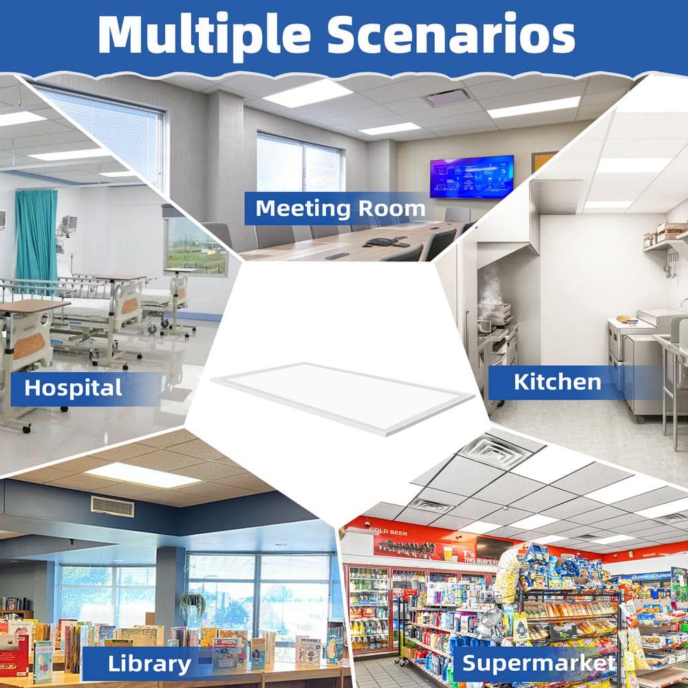 Brighten up commercial spaces with the Bieuoram 2 ft. x 4 ft. Integrated LED Panel Light. Offering 7800 lumens of bright white light, these panels are an ideal upgrade from traditional fluorescent fixtures. Sold in a convenient 12-pack, they provide efficient, long-lasting lighting with easy installation into T-grid ceilings.