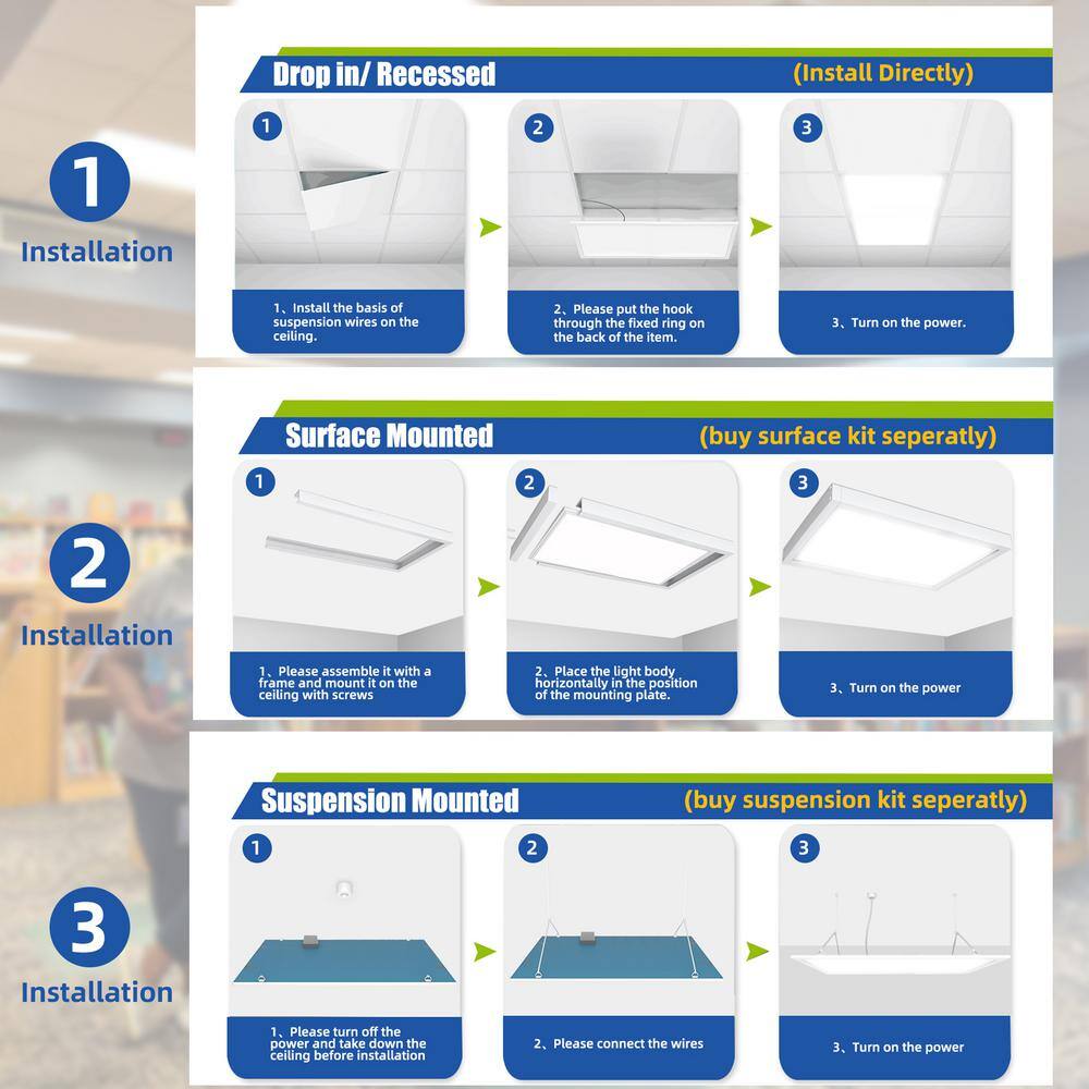 A: The Bieuoram LED panels are designed for drop ceiling installations. Simply fit them into T-grid systems following your grid ceiling's specific instructions.