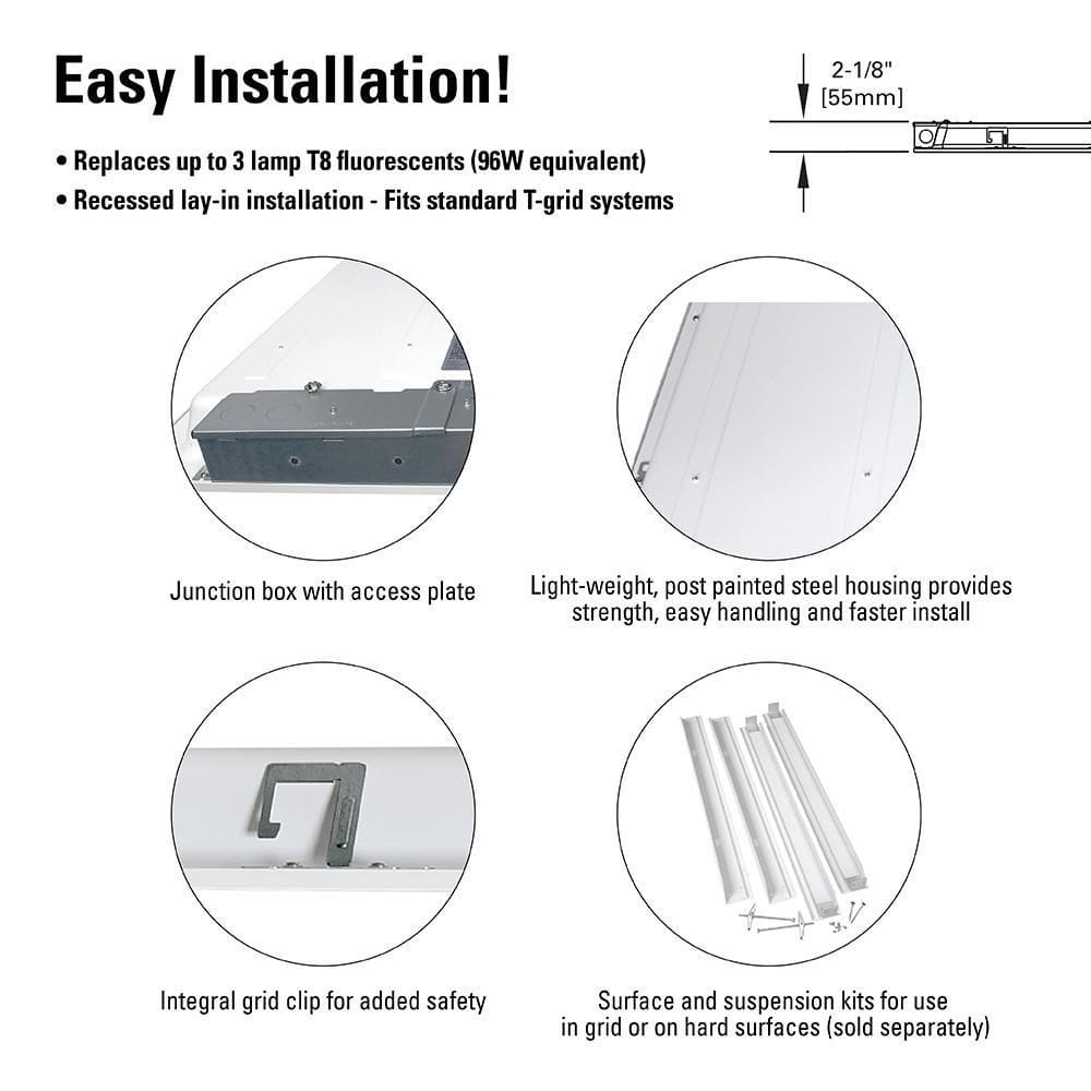 - Versatile Installation: Suitable for grid ceilings, surface, and suspended installations.