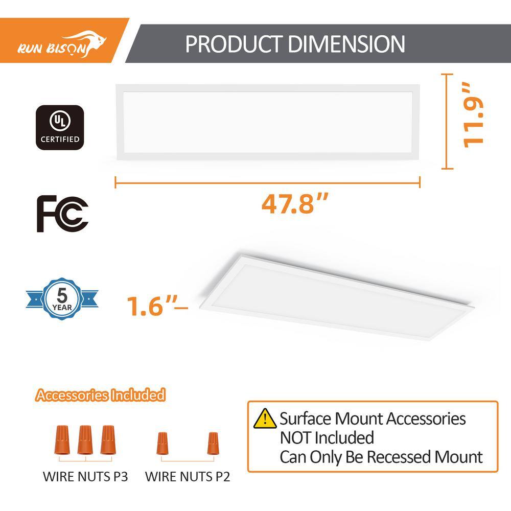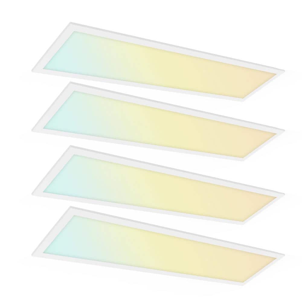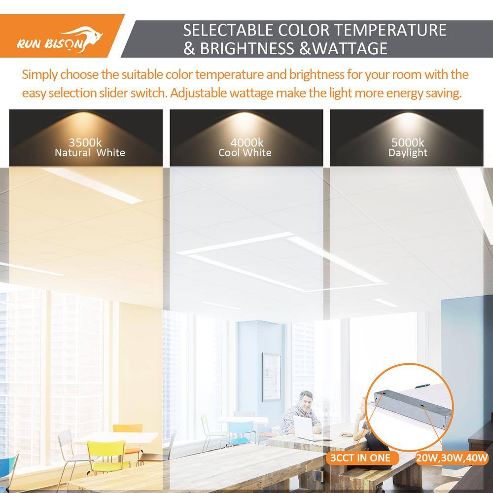RUN BISON 1 ft. x 4 ft. White 2750/3300/4400 Lumens Integrated LED Panel Light Troffer Light, 3500/4000/5000K (4-Pack)