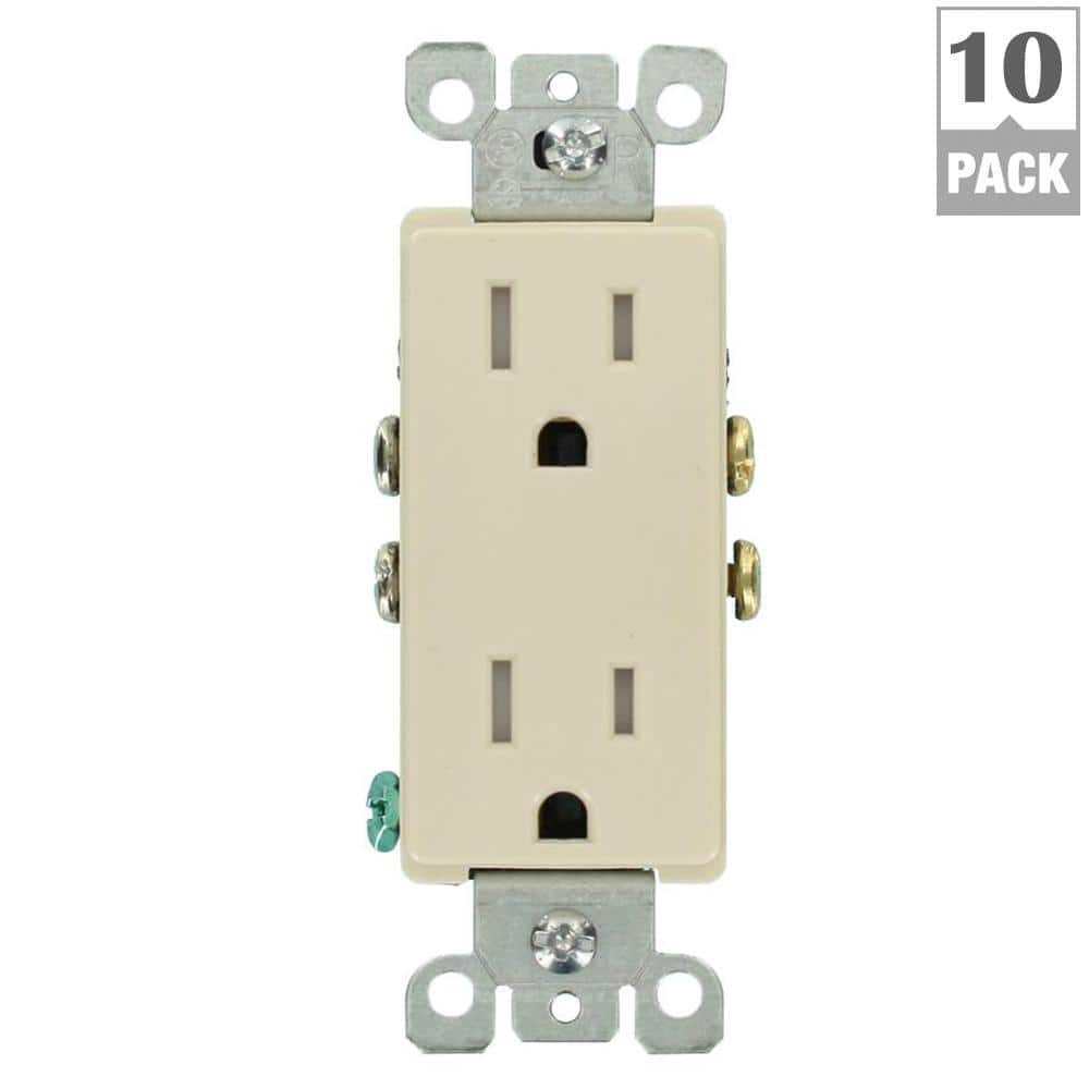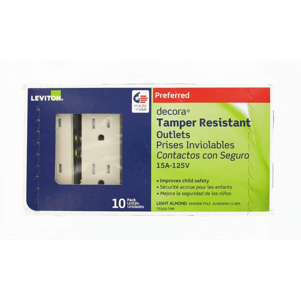 Leviton Decora 15 Amp Tamper-Resistant Duplex Outlet, Light Almond (10-Pack)