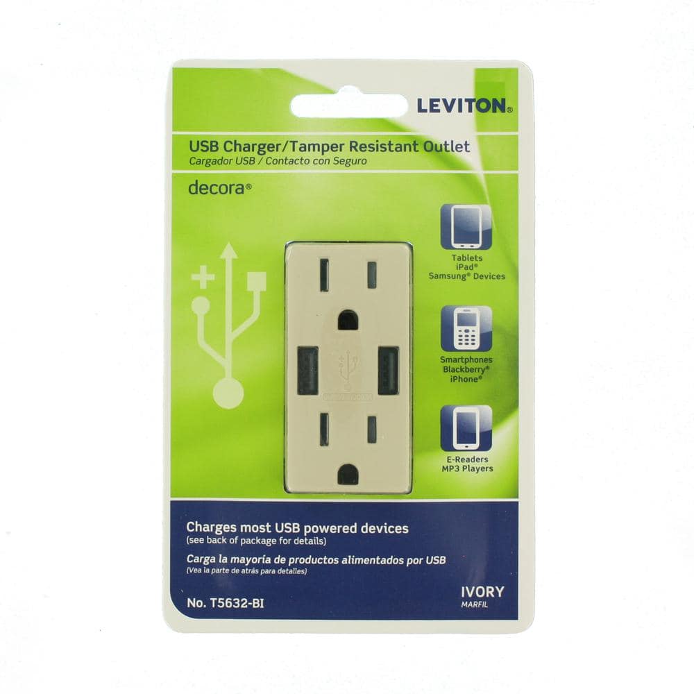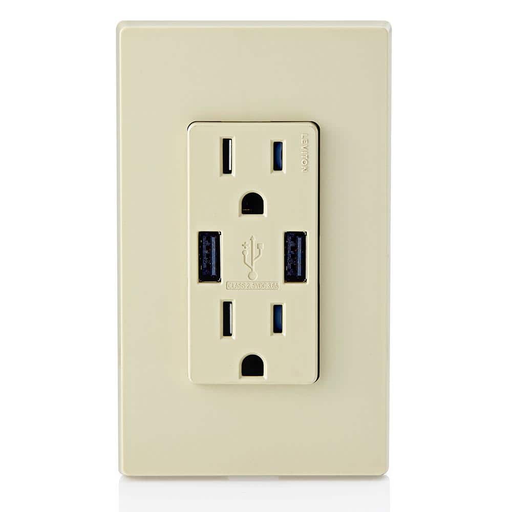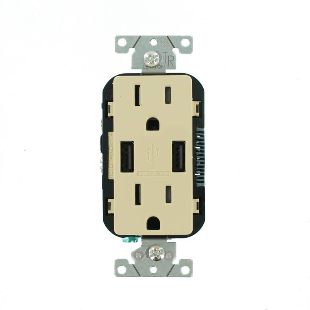 Leviton 15A Tamper-Resistant Outlet with Dual USB-A Charger, Ivory