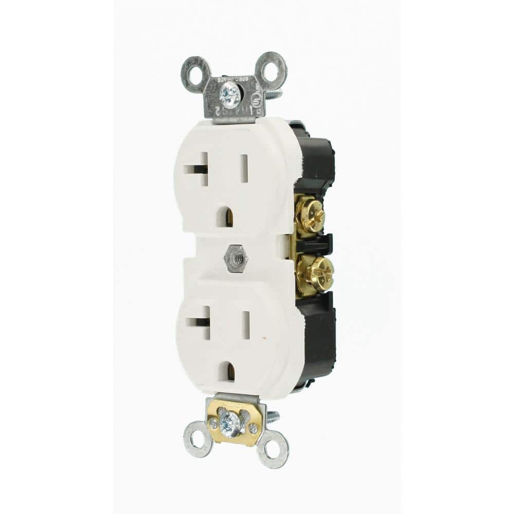 Leviton 20 Amp Commercial Grade Duplex Outlet, White (R62-CBR20-00W)